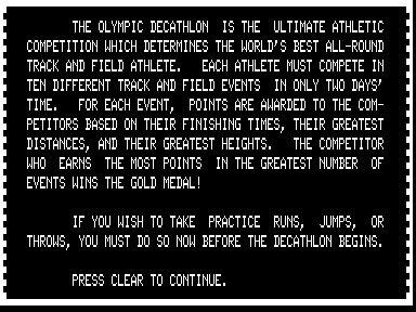 Decathlon despite the improved presentation. The games in the TRS-80